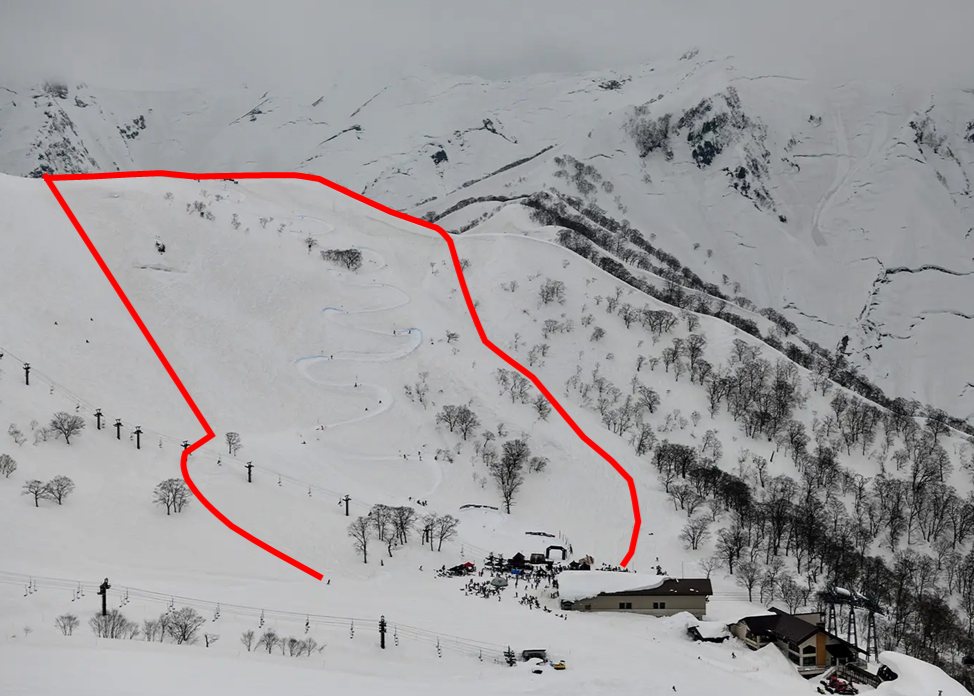 規制エリア:天神峠ペアリフト正面向かって右側‐指定ゲートより天神峠ペアリフト乗り場まで